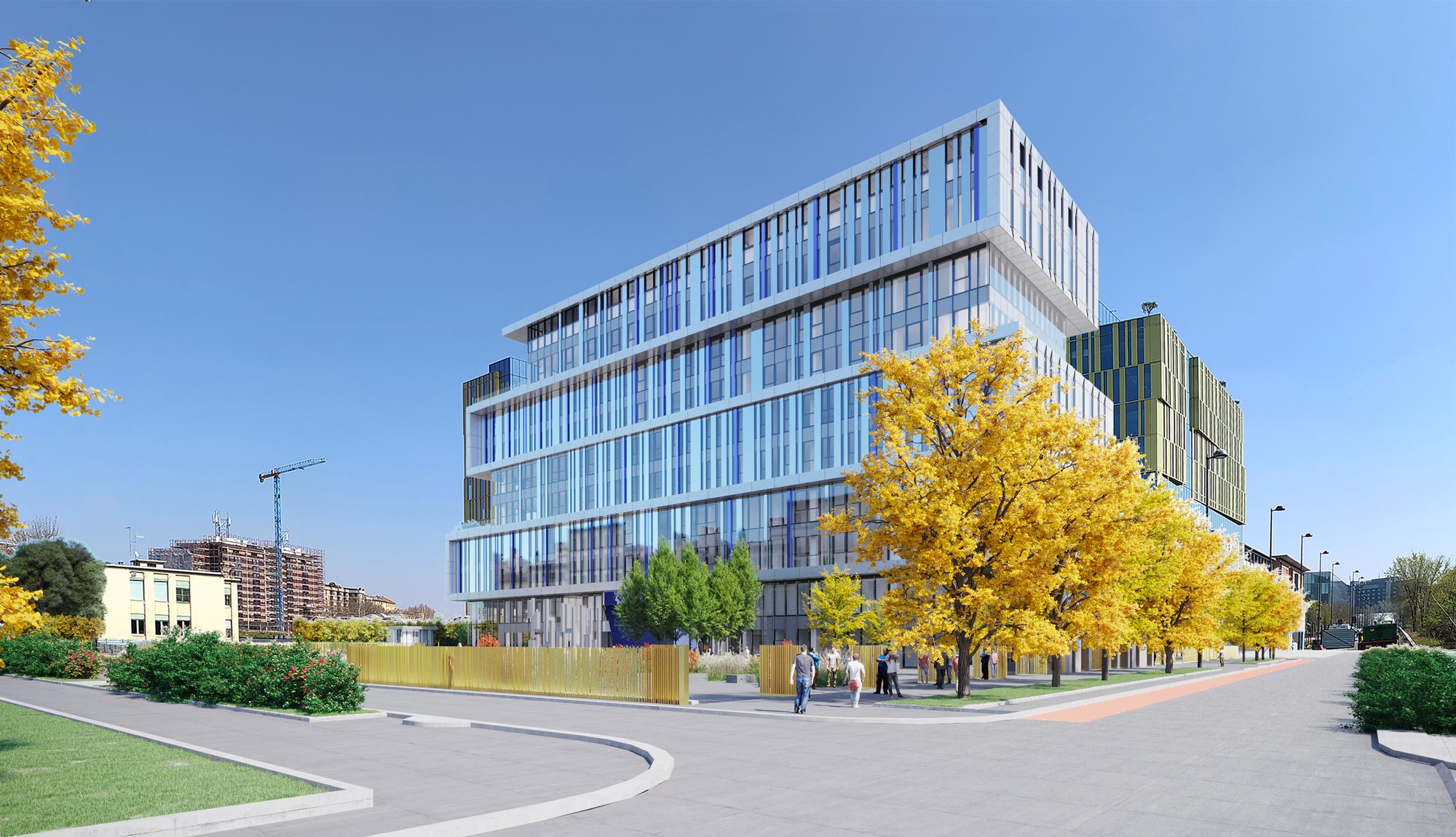 L’edificio è dotato di un sistema BMS che consenta la gestione integrata di tutte le funzioni tecnologiche dell’edificio stesso, che comprendono sistemi per il controllo accessi, sicurezza, rilevazione incendi, illuminazionei, climatizzazione e altro ancora. È prevista un’architettura distribuita in IP con controllori liberamente dedicati alla gestione e monitoraggio della produzione fluidi mediante le relative interfacce in M-Bus per i vari contabilizzatori, in Modbus per gli analizzatori di rete, KNX/DALI per la gestione dell’illuminazione. Tutte le informazioni relative ai vari sottosistemi che compongono l’architettura dell’impianto BMS saranno visionabili da una postazione di supervisione installata all’interno della control room dell’edificio. Sulla copertura dell’edificio è presente un impianto fotovoltaico della potenza di 56 kWp.