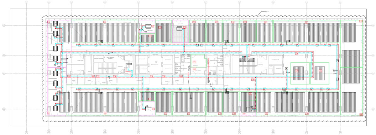 I restanti spazi adibiti a servizi speciali, come sale corsi, mensa, sono invece serviti da impianto a tutt’aria con unità dedicate per ogni zona o da impianto con fancoil.